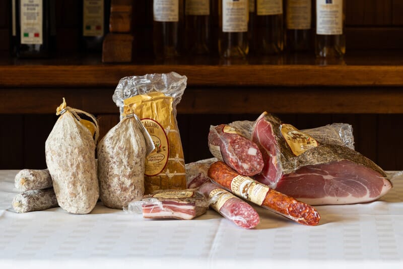 Lavoriamo, produciamo e vendiamo all'ingrosso porchetta, salame toscano, prosciutto crudo disossato, lardo alle erbe aromatiche, salsicce di cinghiale e suino.